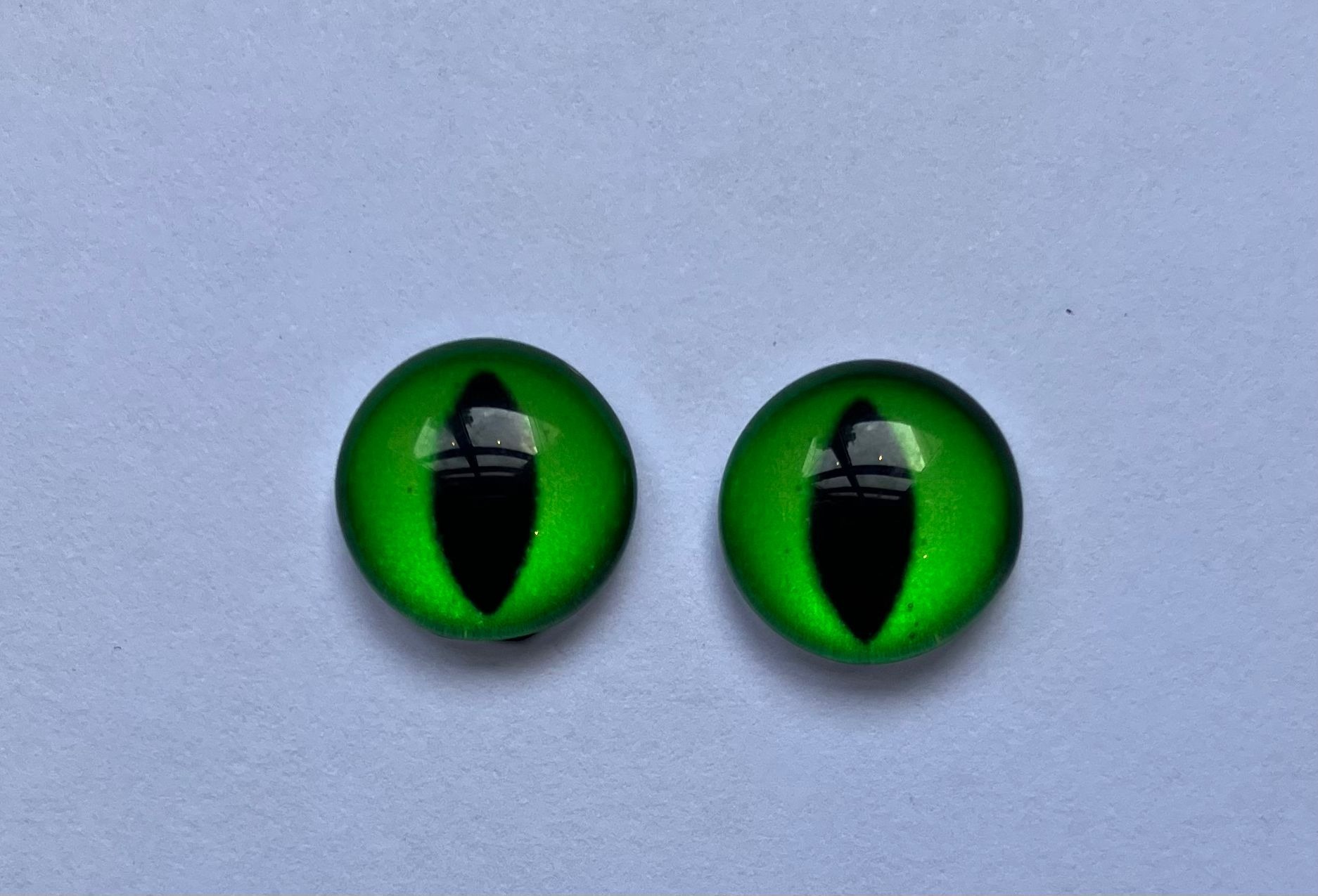 Deze oogjes zijn perfect om te gebruiken bij het maken van dieren met ovalen pupillen, zoals een kat, draak, kikker, vogel of diverse fantasiedieren. De bolle glaslaag zorgt voor een mooie dieptewerking, waardoor het lijkt alsof de oogjes je echt aankijken.