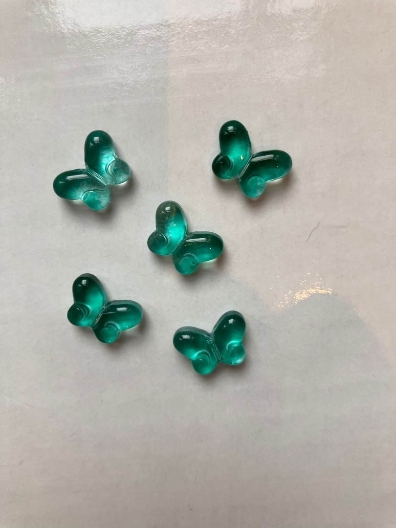 Vlindertjes glas 15 x 10 mm 5 stuks Turquoise
